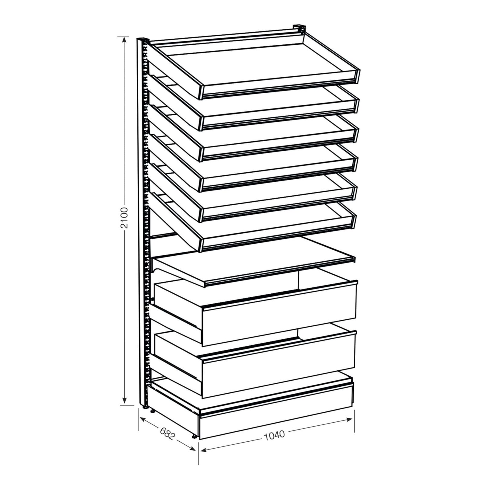 The six angled drawers allow auto feeding of your stock, decreasing stock management and increasing staff efficiency.